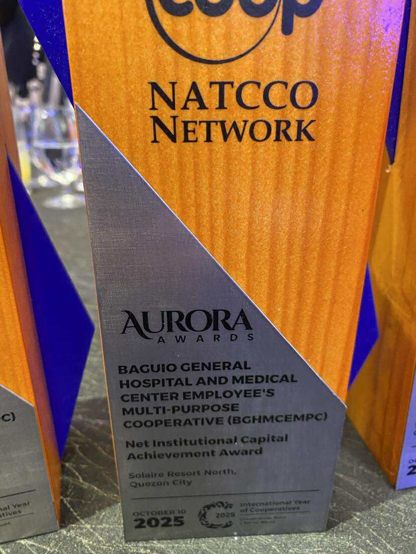 The Baguio General Hospital and Medical Center Employees Multipurpose Cooperative (BGHMCEMPC) proudly takes part in the NATCCO Aurora Awards 2025, held on October 10, 2025, at Solaire Vertis, Quezon City, with the theme “Beacons of Brilliance, Builders of a Better World.”